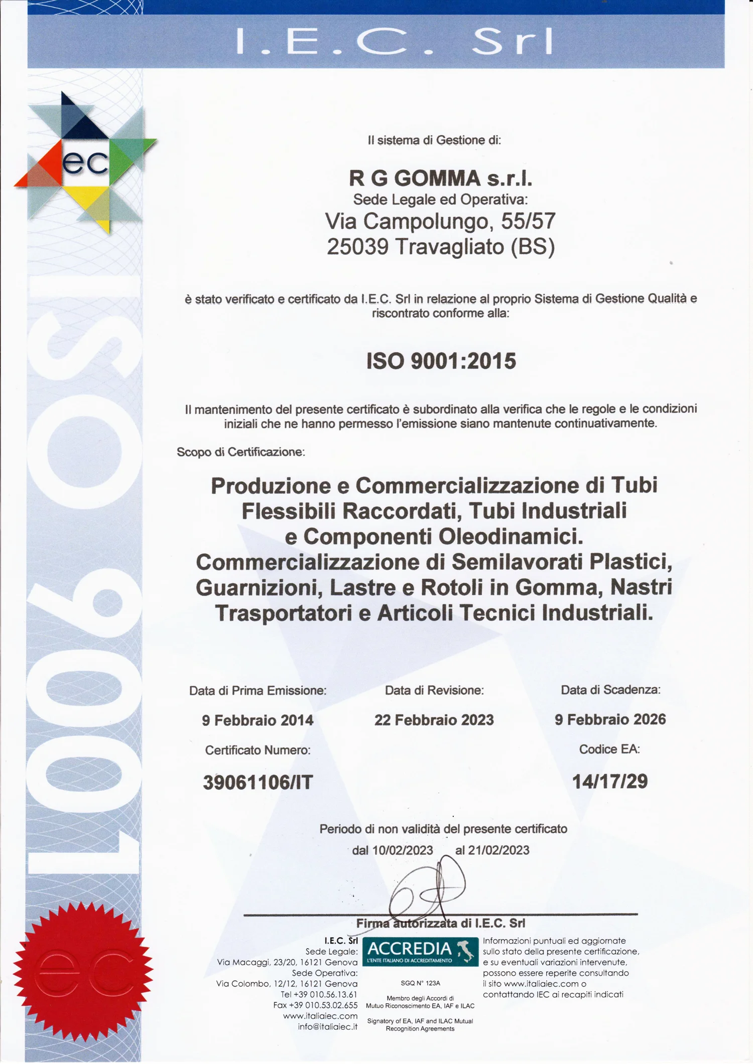 CERTIFICATO QUALITA' ISO 9001:2015